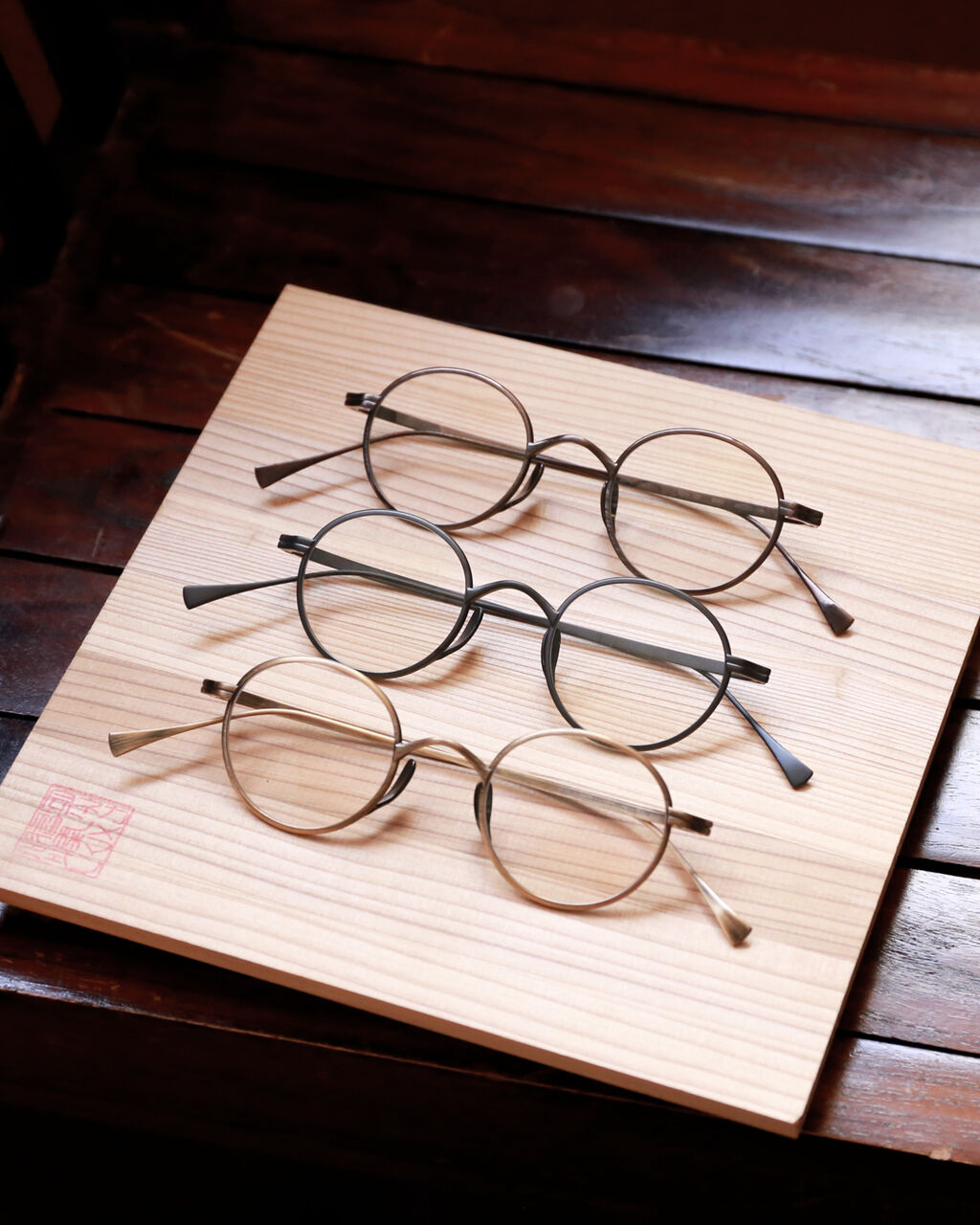 指輪のような丸味を帯びた眼鏡フレーム