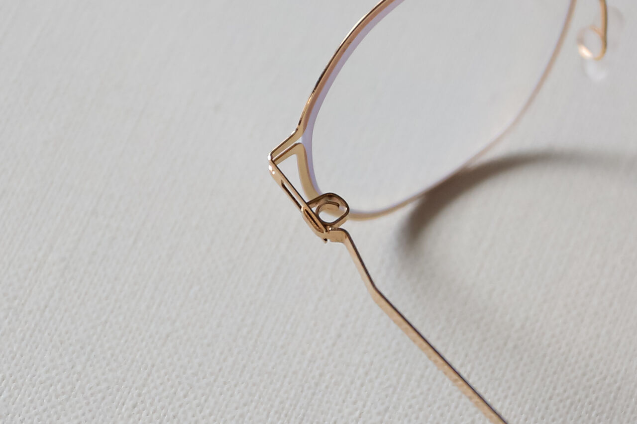 ヘキサゴンシェイプの"AURI"はフロントリムにぐるっと彫金が施されているモデルで、