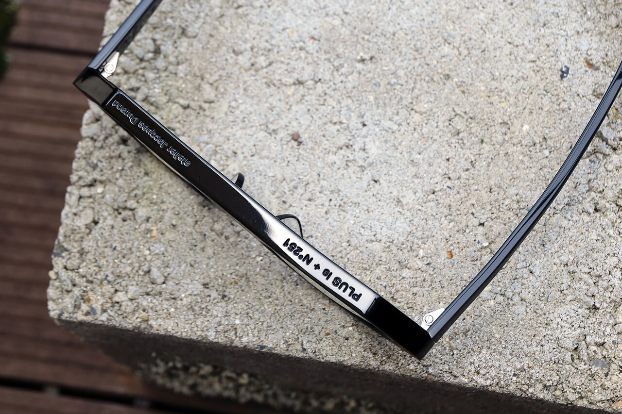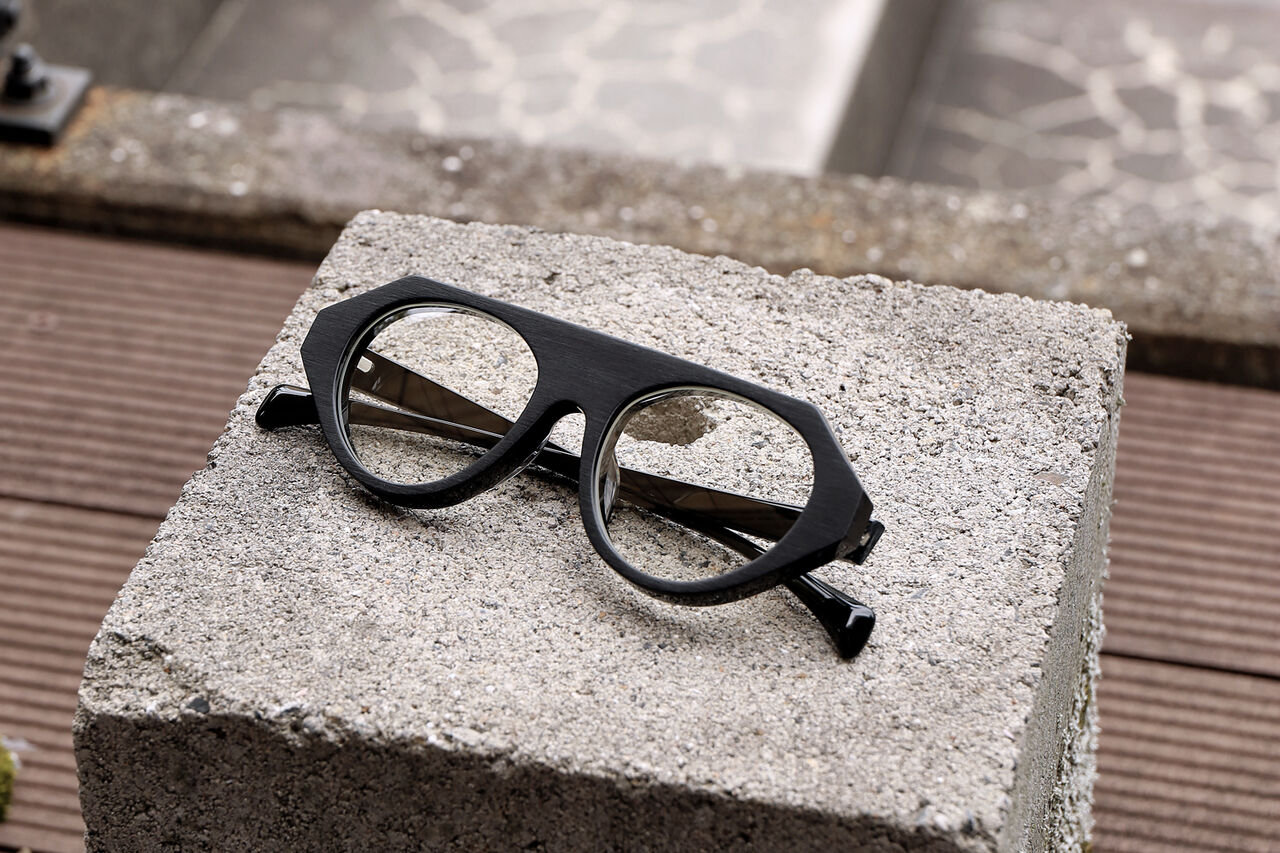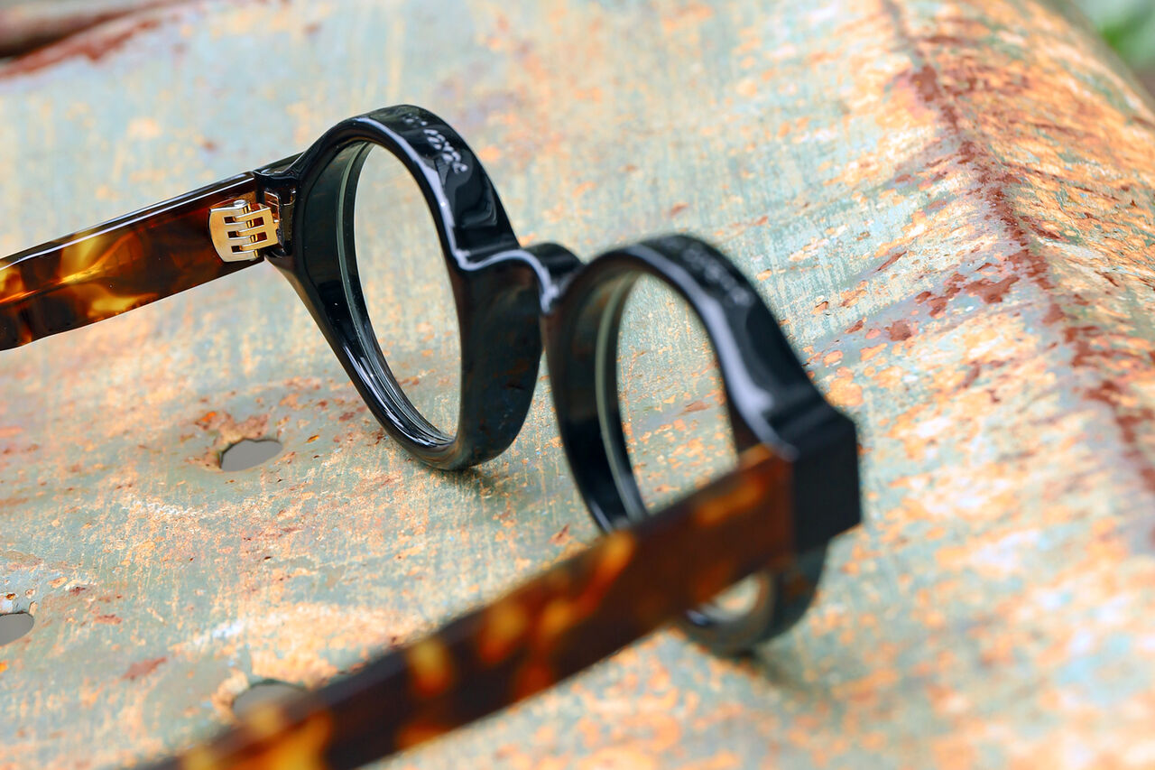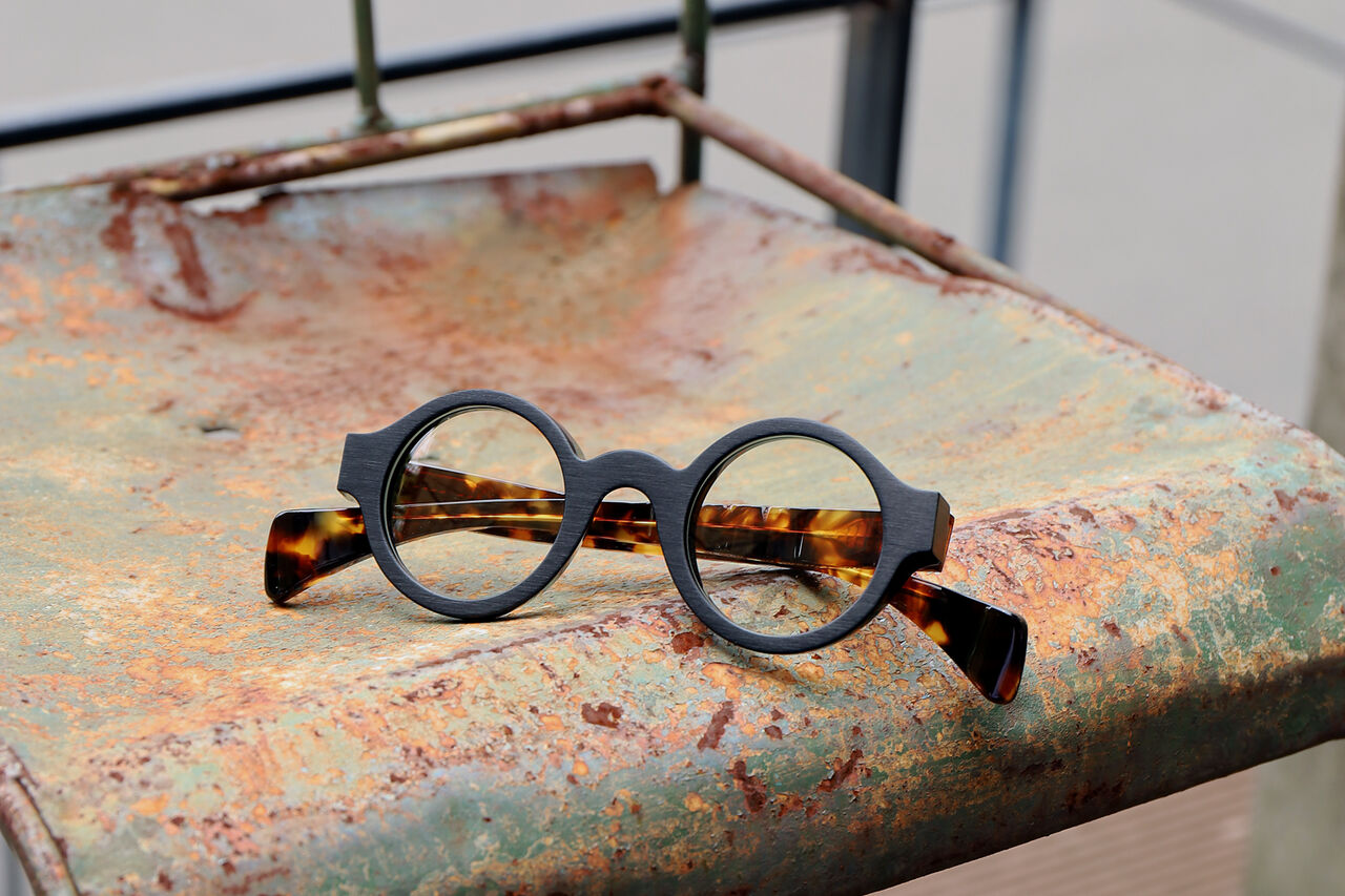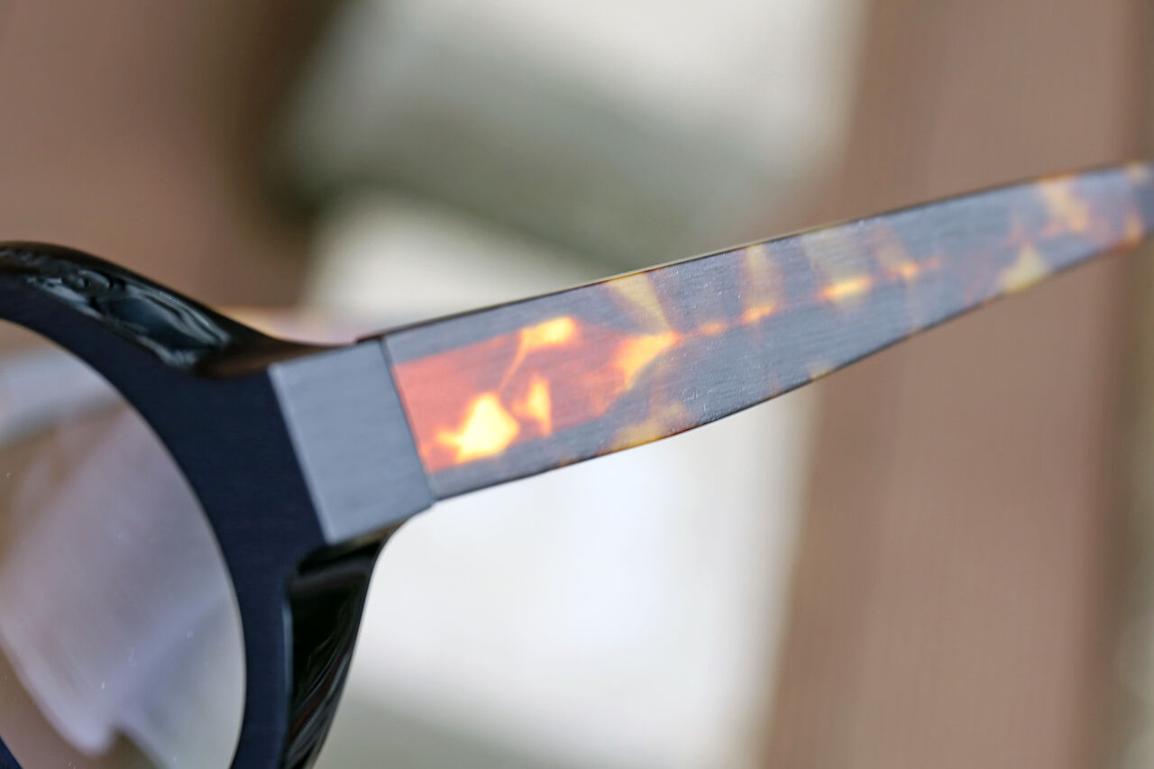 フロントはブラック、テンプルはデミブラウンの組み合わせ。