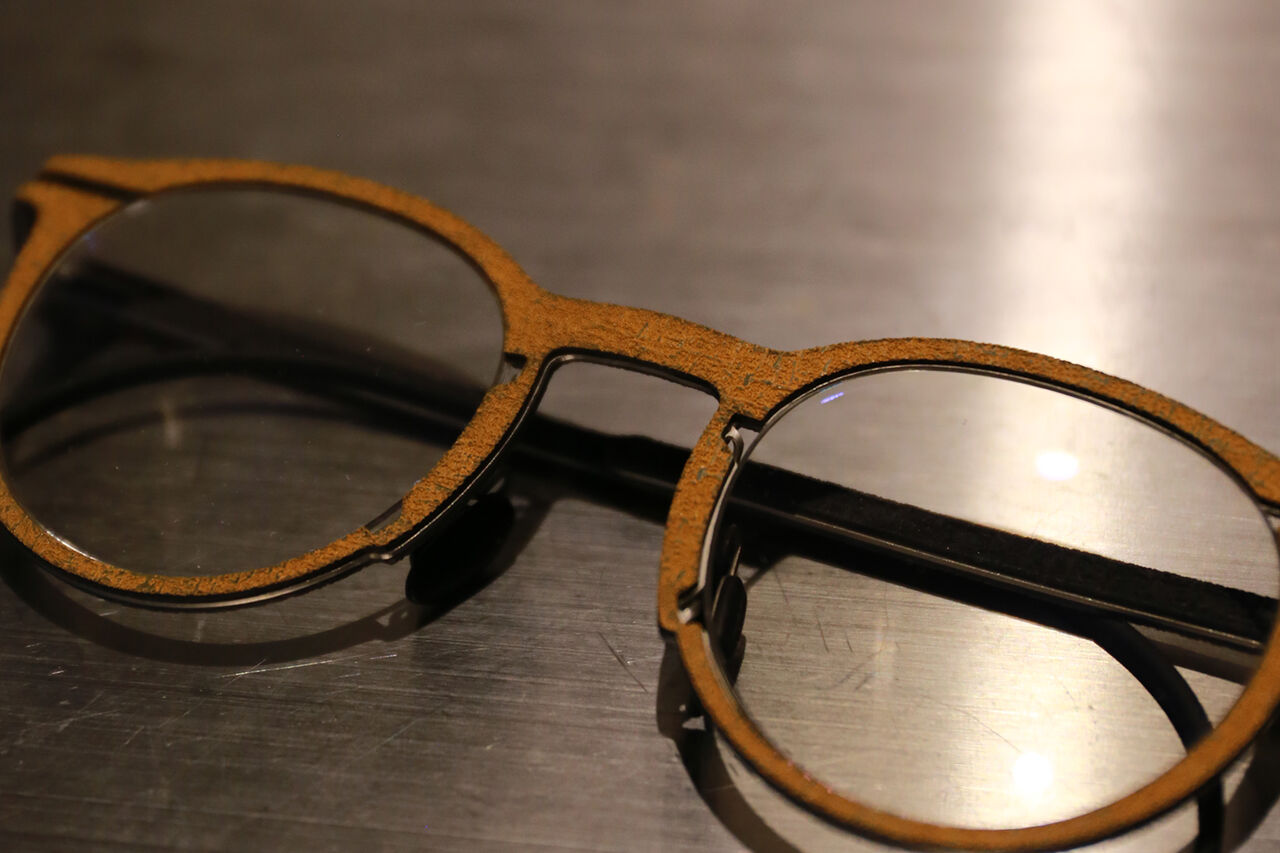これまでおよそアイウェアに用いられるなど想像もできなかったこれらの素材は、その表面の非常に細かくランダムな凹凸により生まれる絶妙なツヤ消し具合によって、インパクトがありながらも同時に意外と肌馴染みが良いという、唯一無二なテクスチャーを実現しています。