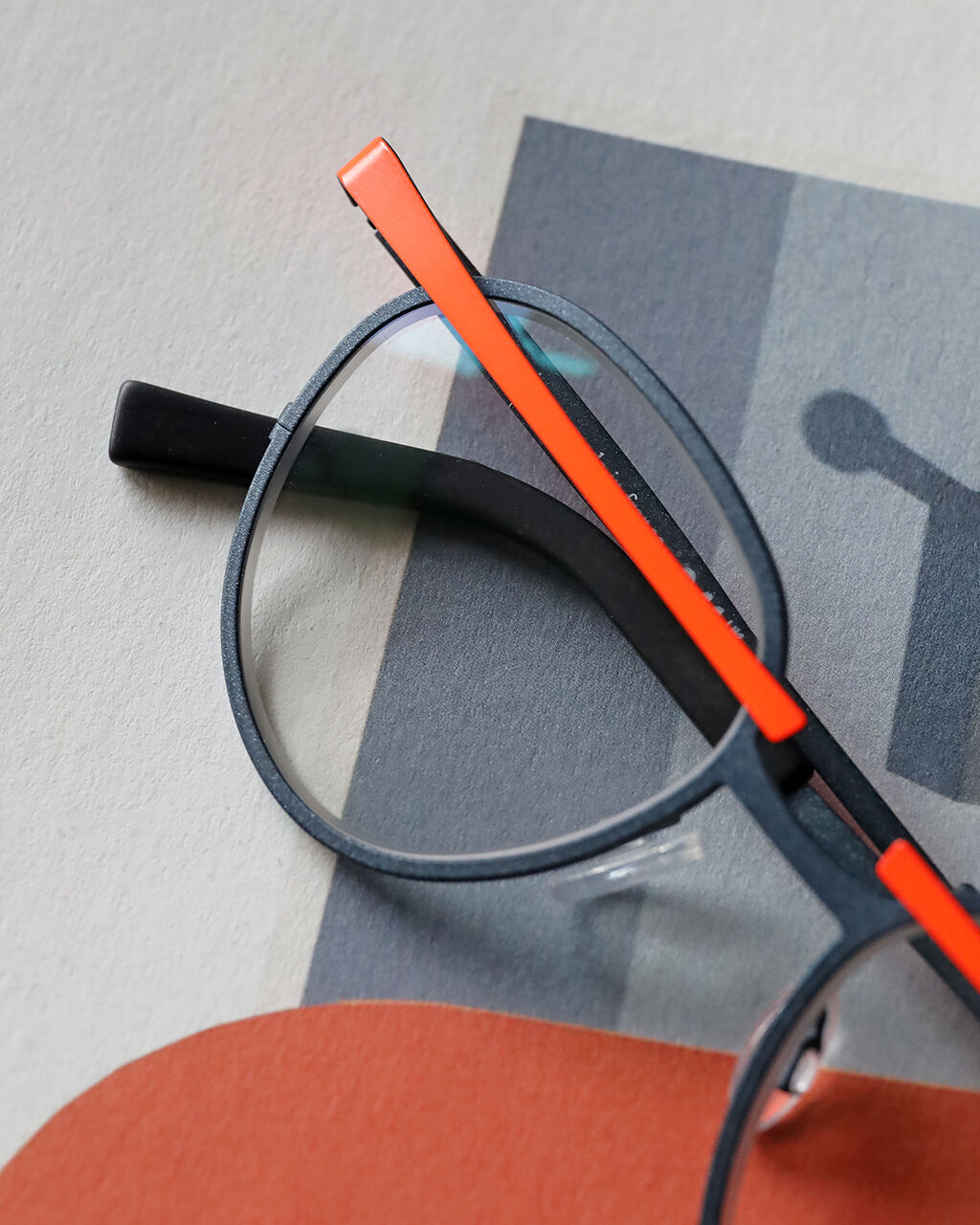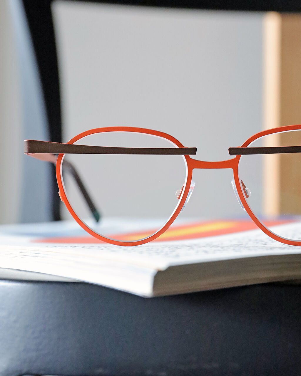 フレーム上部にユニークなディテールが施され、まるでサーモントフレームにアーティスティックなスパイスを加えたような仕上がりとなっています。シンプルながらも大胆、個性を感じさせるフォルムとカラーリングは、他にはない theo ならではの魅力。