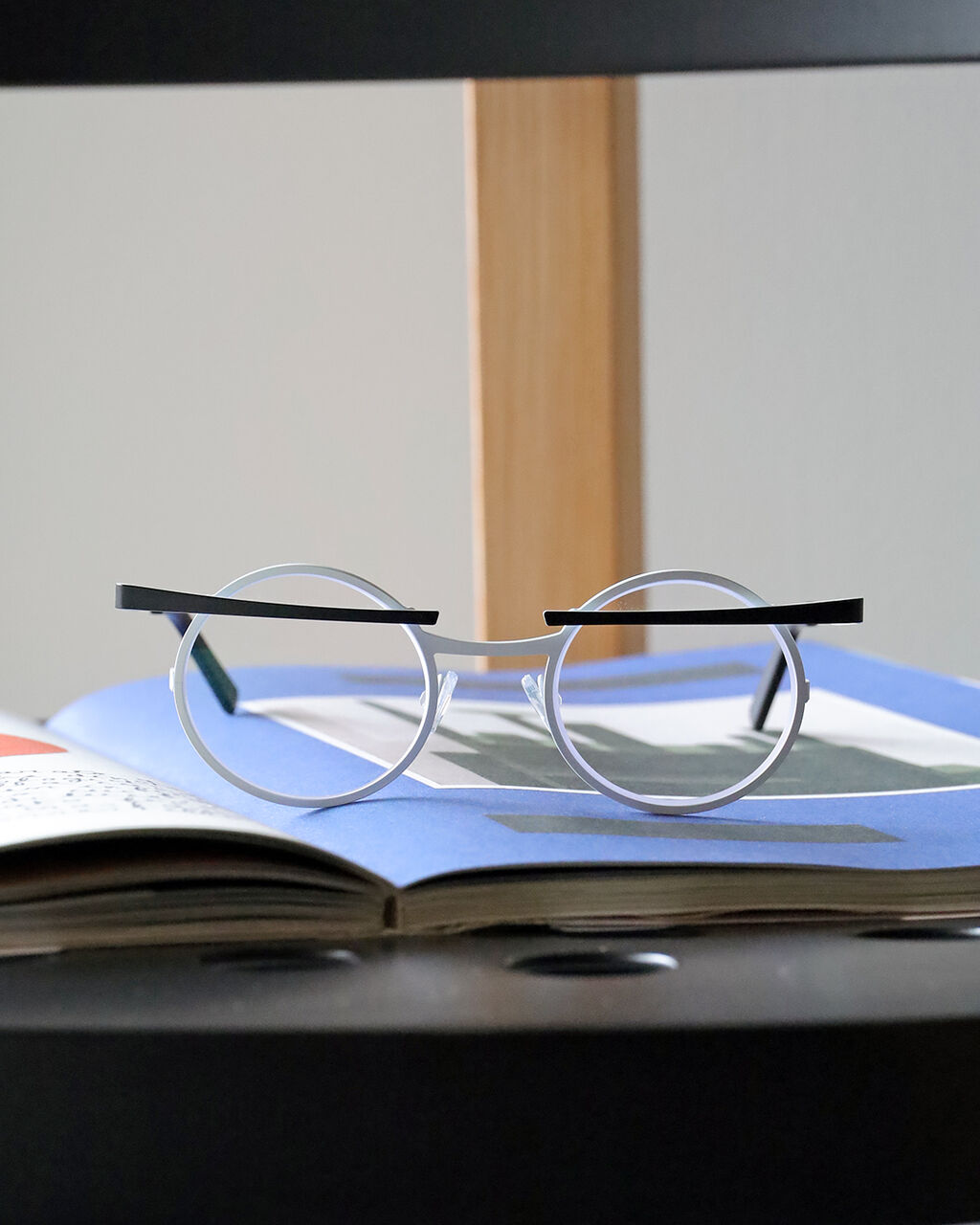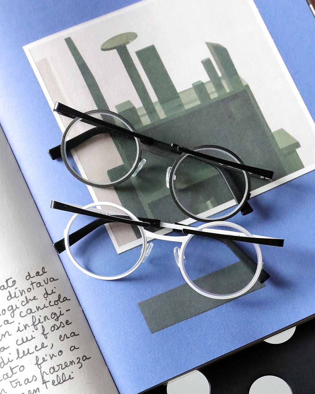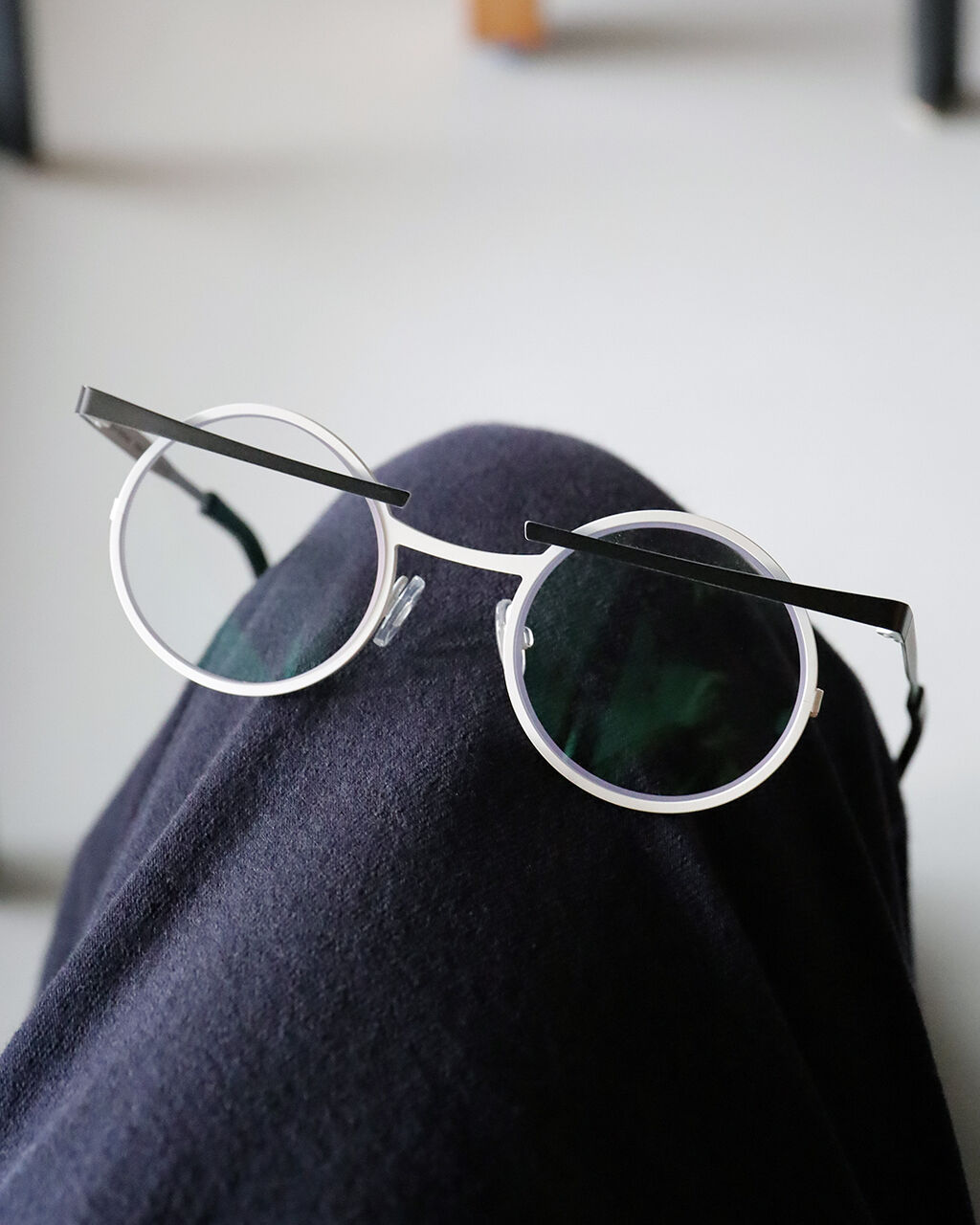 ミニマルでありながらも、ひと目でその個性が伝わる大胆なデザインが特徴です。フレーム全体を引き締めるブラックのラインが、クラシックなラウンド型にモダンなアクセントをプラス。特にホワイト×ブラックのコントラストは、アート作品を思わせる美しさです。