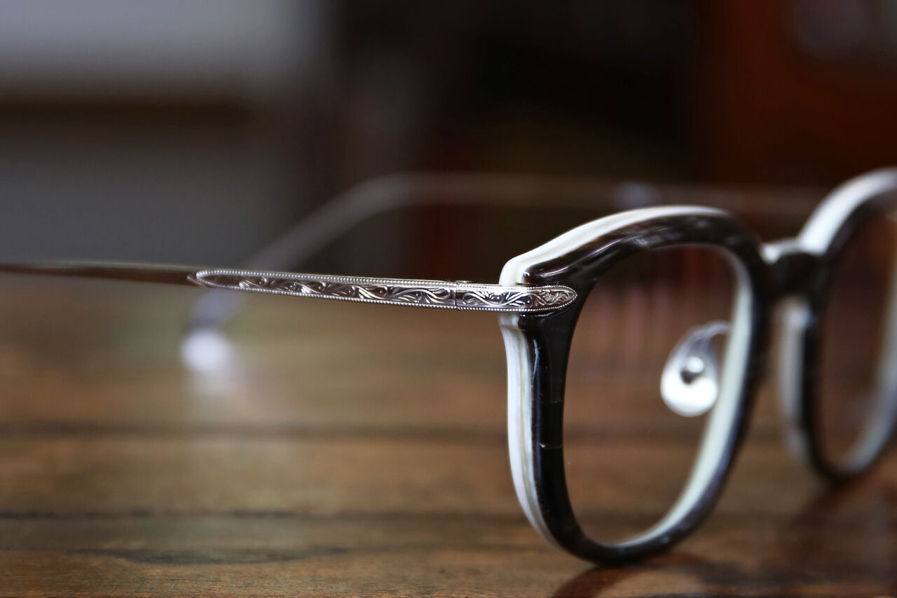 メガネの顔であるフロントにバッファローホーン、テンプルには彫金をあしらったシルバー925を採用したラグジュアリーなモデル。