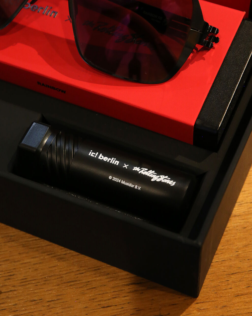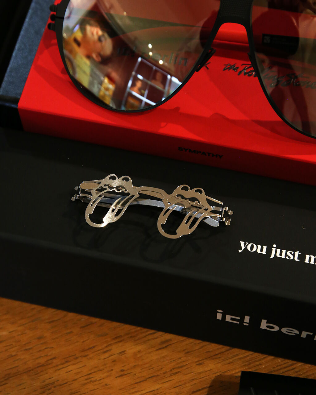 モデル名と共にテンプル内側にはそれぞれ「Red Lips Logo」が刻印されており、真っ赤な先セルパーツ含め、ふんだんにコラボレーション要素が詰まっております。
