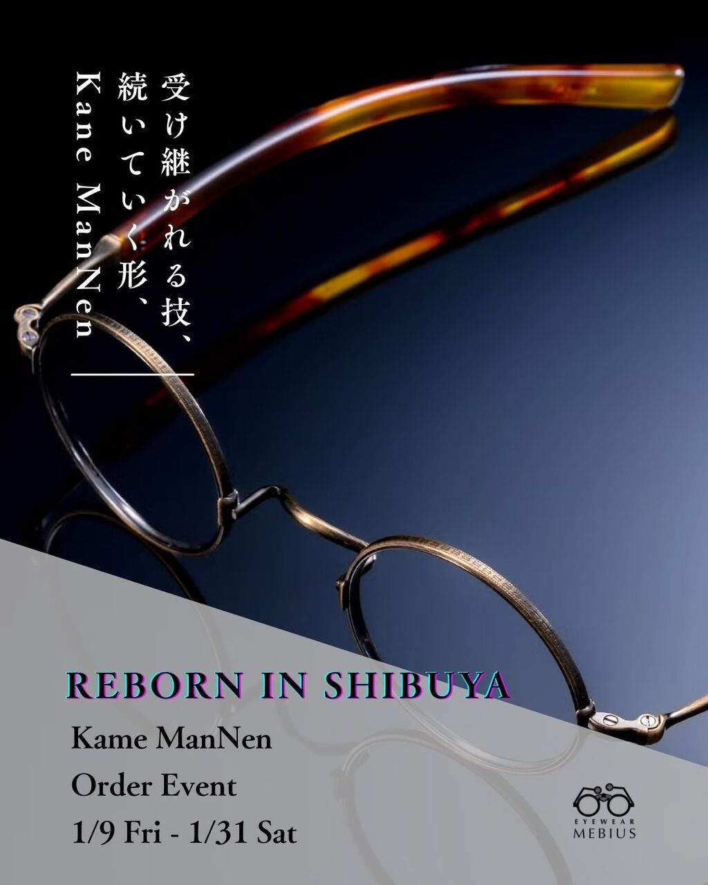 1月のイベントではeyewear Mebiusで毎年恒例となっております【Kame ManNen】のオーダーイベントを明日1月9日(金)~1月31日(土)より行います。