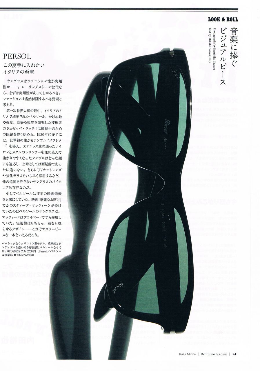 RollingStone 8月号にPersolのサングラスが紹介されています。