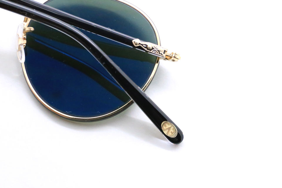 ブリッジ、ヨロイ、テンプル芯などの金属パーツは、元のデザインに忠実に型から作り直し、軽さと強度に優れるチタン製にアップグレードされている。