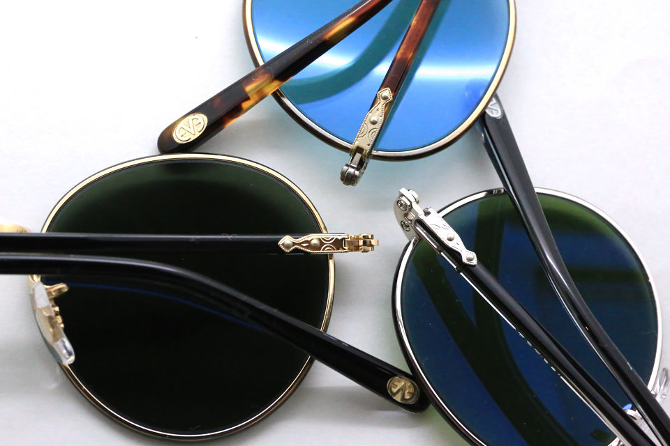 特注オリジナル生地である美しい鼈甲柄を中心とした懐かしみのあるオーセンティックなフレームカラー展開に、サングラスはイタリア製の最高級ガラスレンズを使用している。