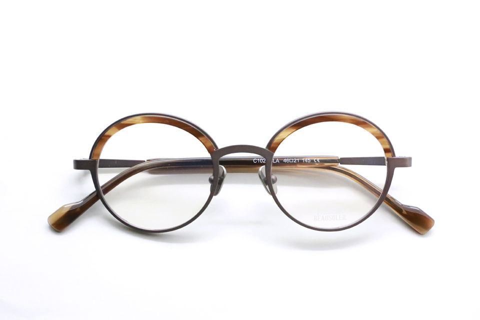 FREDERIC BEAUSOLEIL(ボーソレイユ) 丸眼鏡フレーム " C102 " col.CLA/茶ササ