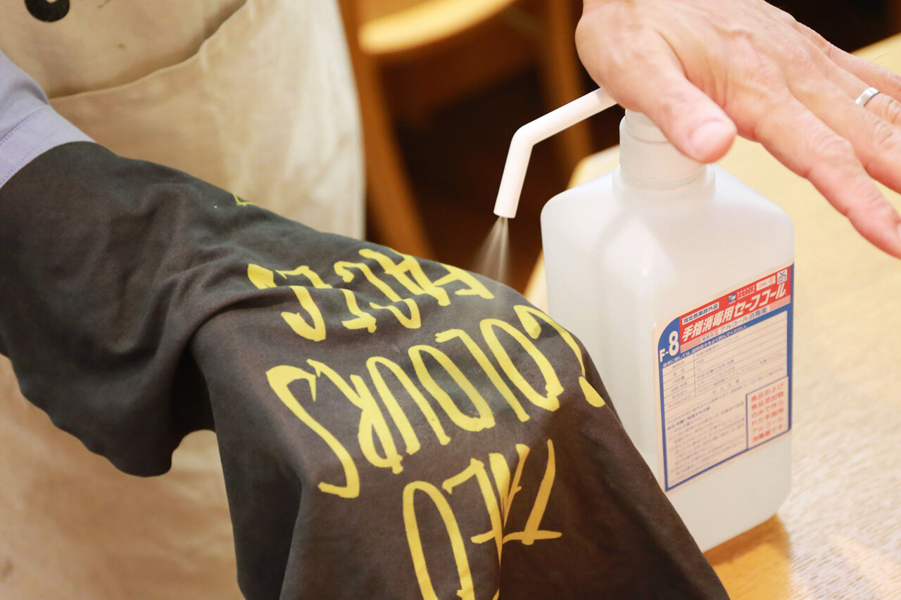 店舗入口にアルコール消毒液を準備しております