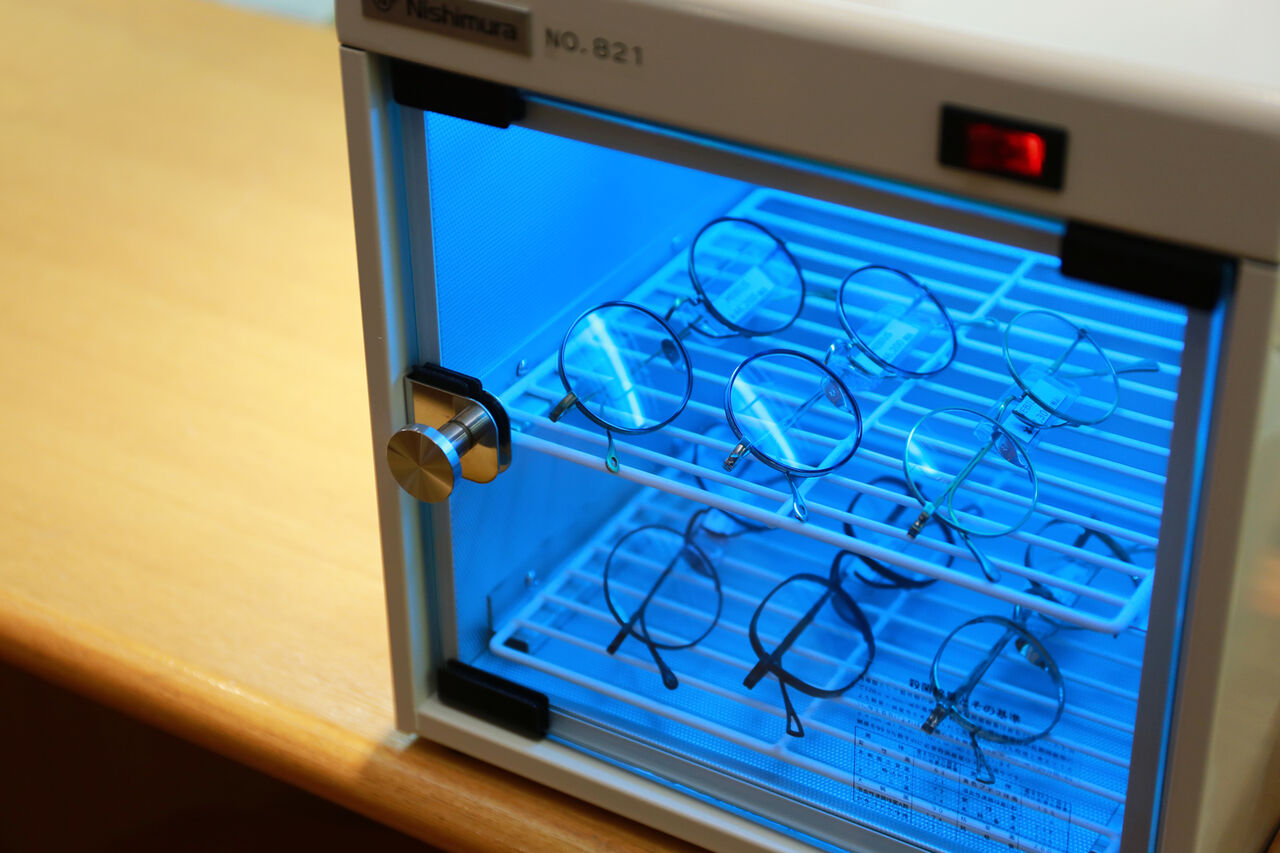 その後、お客様がご試着になったフレームなどは【紫外線での殺菌】も行っております